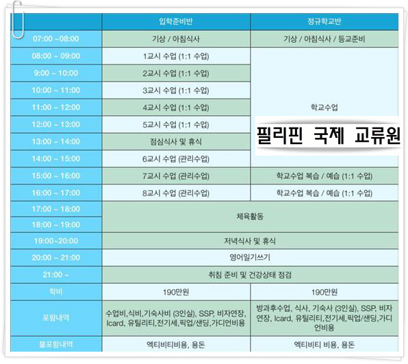 #필리핀학교입학준비반은 8주에서 12주 학교입학 시험준비반이 있습니다.