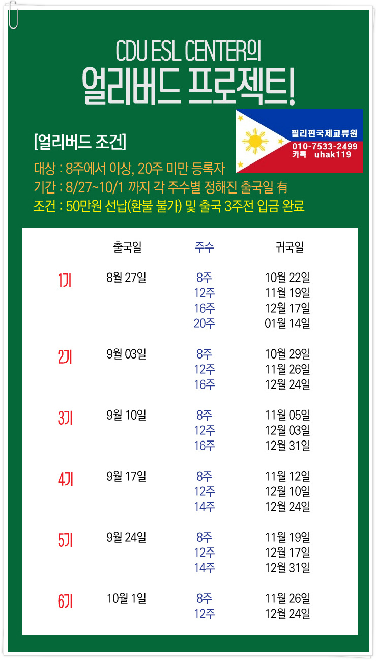#공무원유학휴직 #공무원어학연수 #비수기할인 #CDU어학원 #세부어학연수