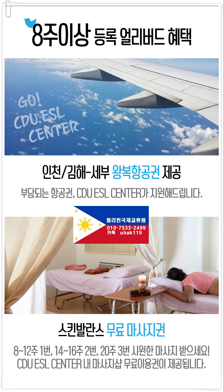 8주 등록시 : 인천 / 김해 - 세부 왕복 항공권 제공