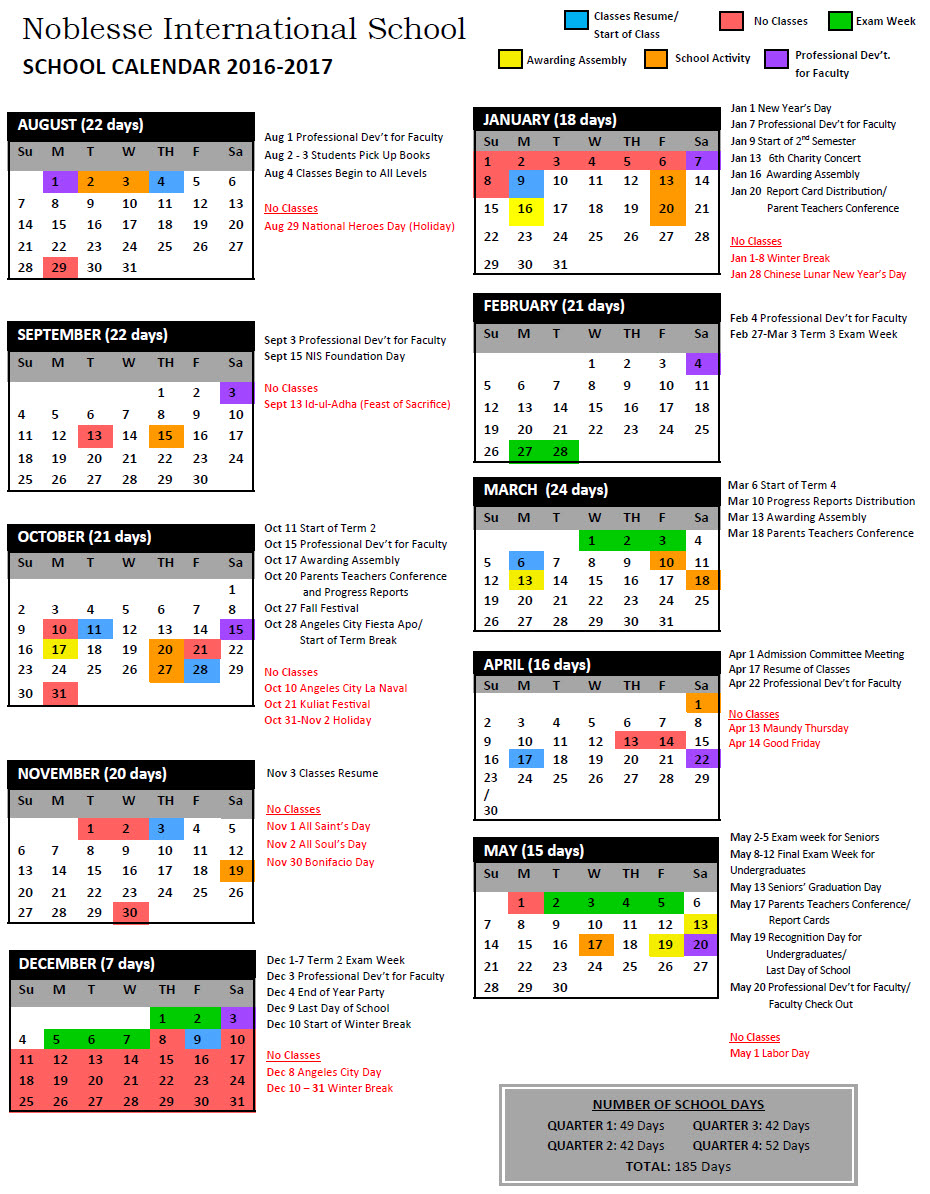 필리핀 노블레스 국제학교 2016년 - 2017년 학교 일정 노블레스 국제학교 방학과 개학, 시험일정이 나와있습니다. 필리핀 클락 노블레스 국제학교 입학 상담 필리핀국제교류원 070-7533-2499 / 010-7533-2499 카톡 uhak119