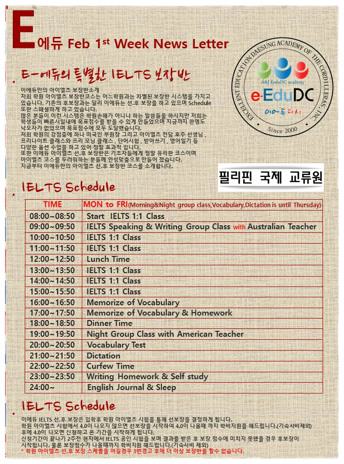 필리핀 아이엘츠시험 대비 이에듀어학원 상담 필리핀국제교류원 010-7533-2499 카톡아이디 uhak119
