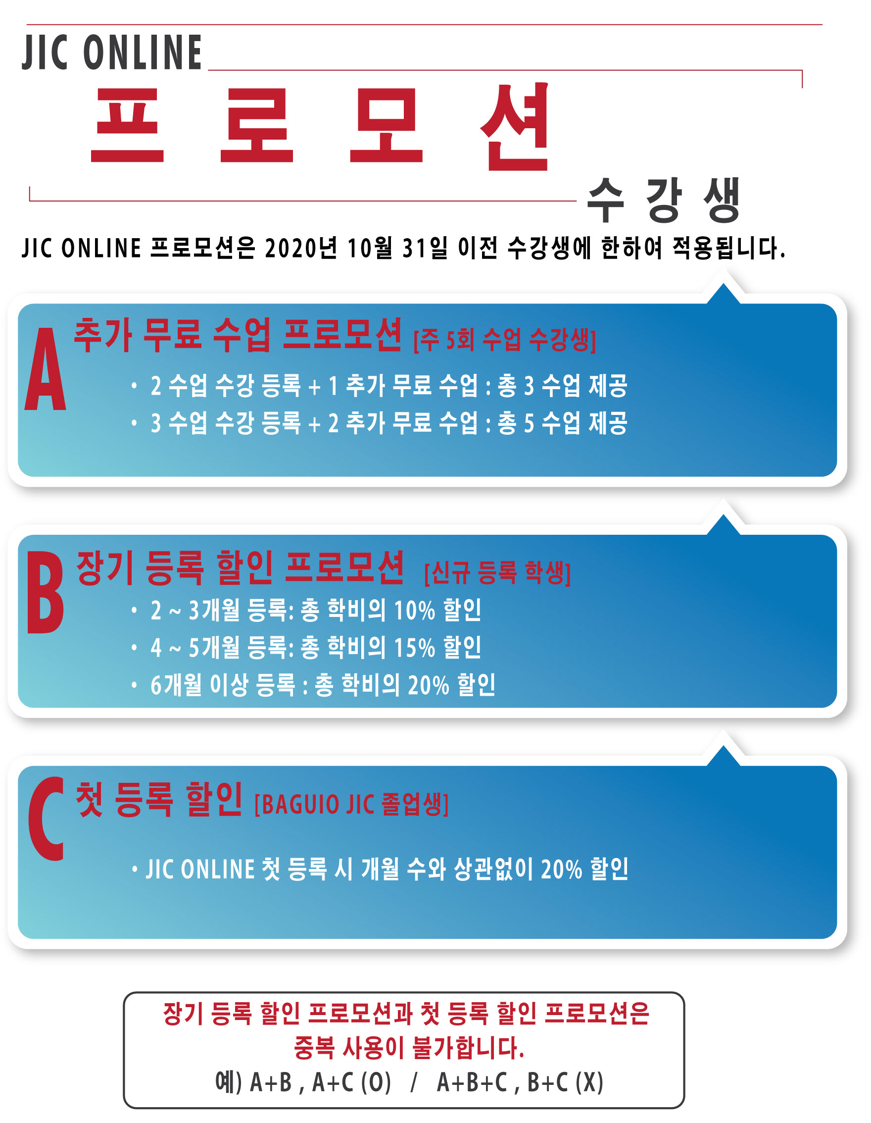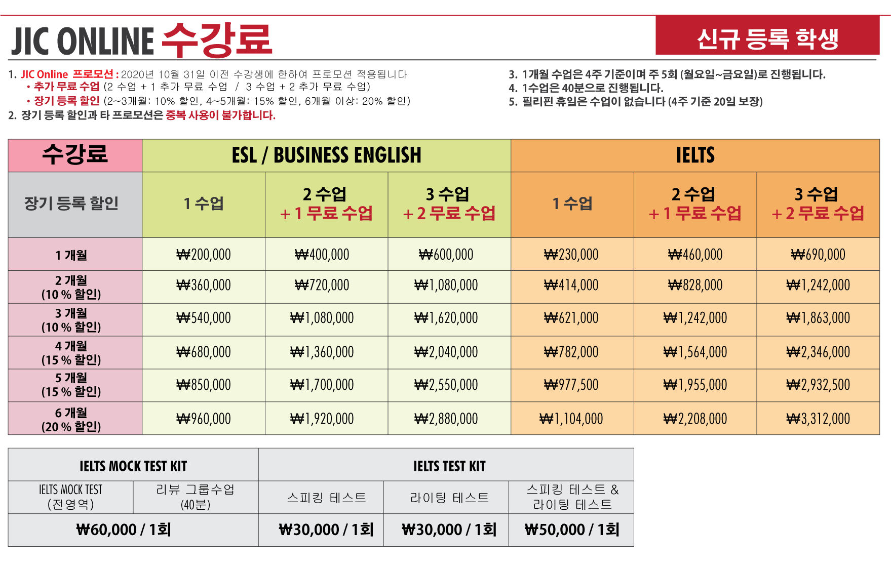 초등학생 온라인 화상영어 필리핀 바기오 JIC어학원 10월 31일까지 등록자 할인 프로모션 혜택 안내
