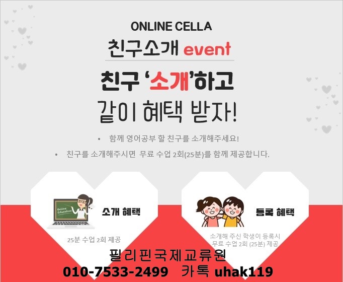 필리핀 세부 셀라어학원 온라인 화상영어 친구소개 혜택