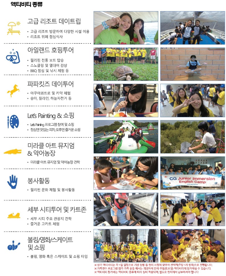 필리핀 세부 CG어학원 투봇리조트가족연수 추천사항