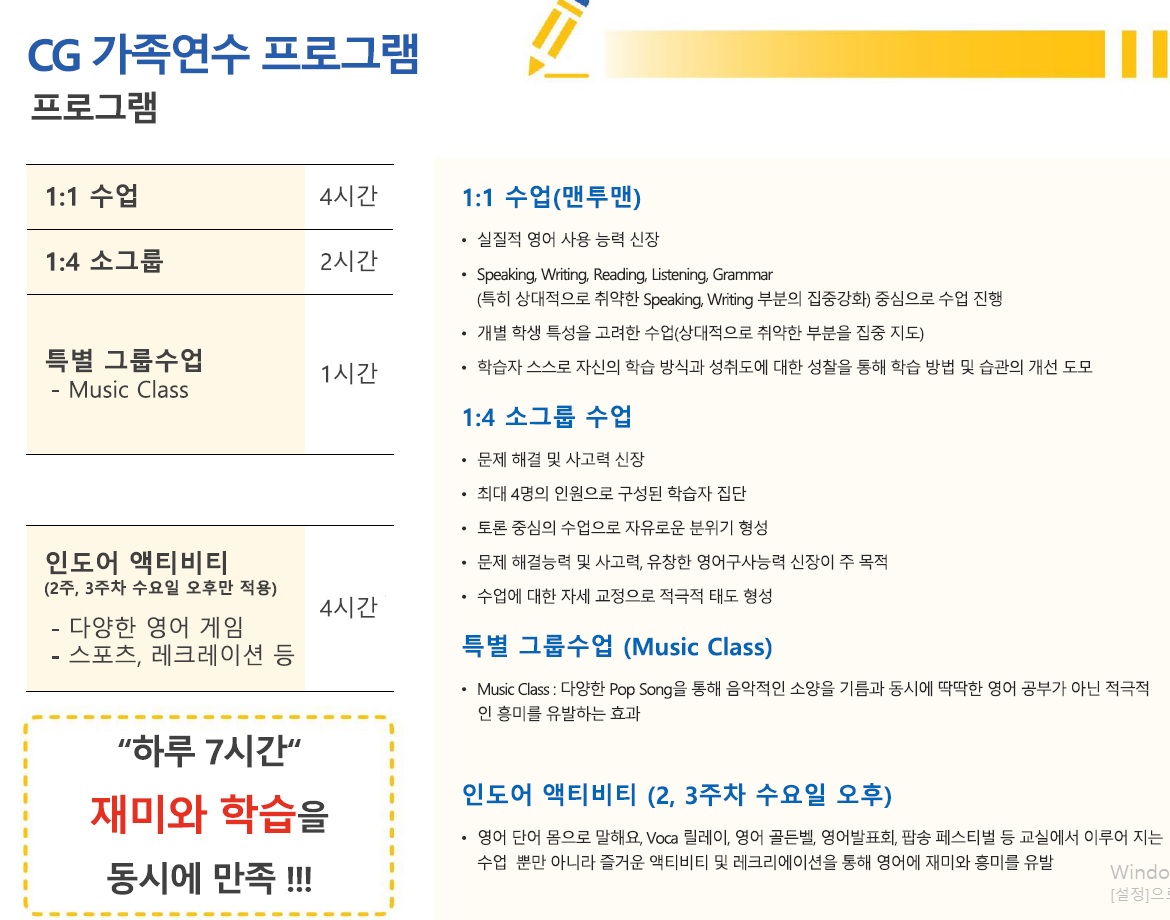 CG어학원 가족연수 비용