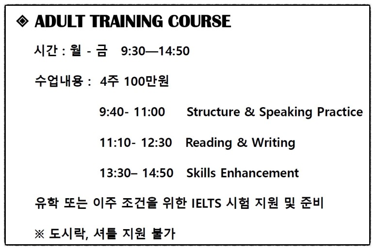 M2L어학원  ESL 과정과 아이엘츠 성인 직장인 시니어 어학연수