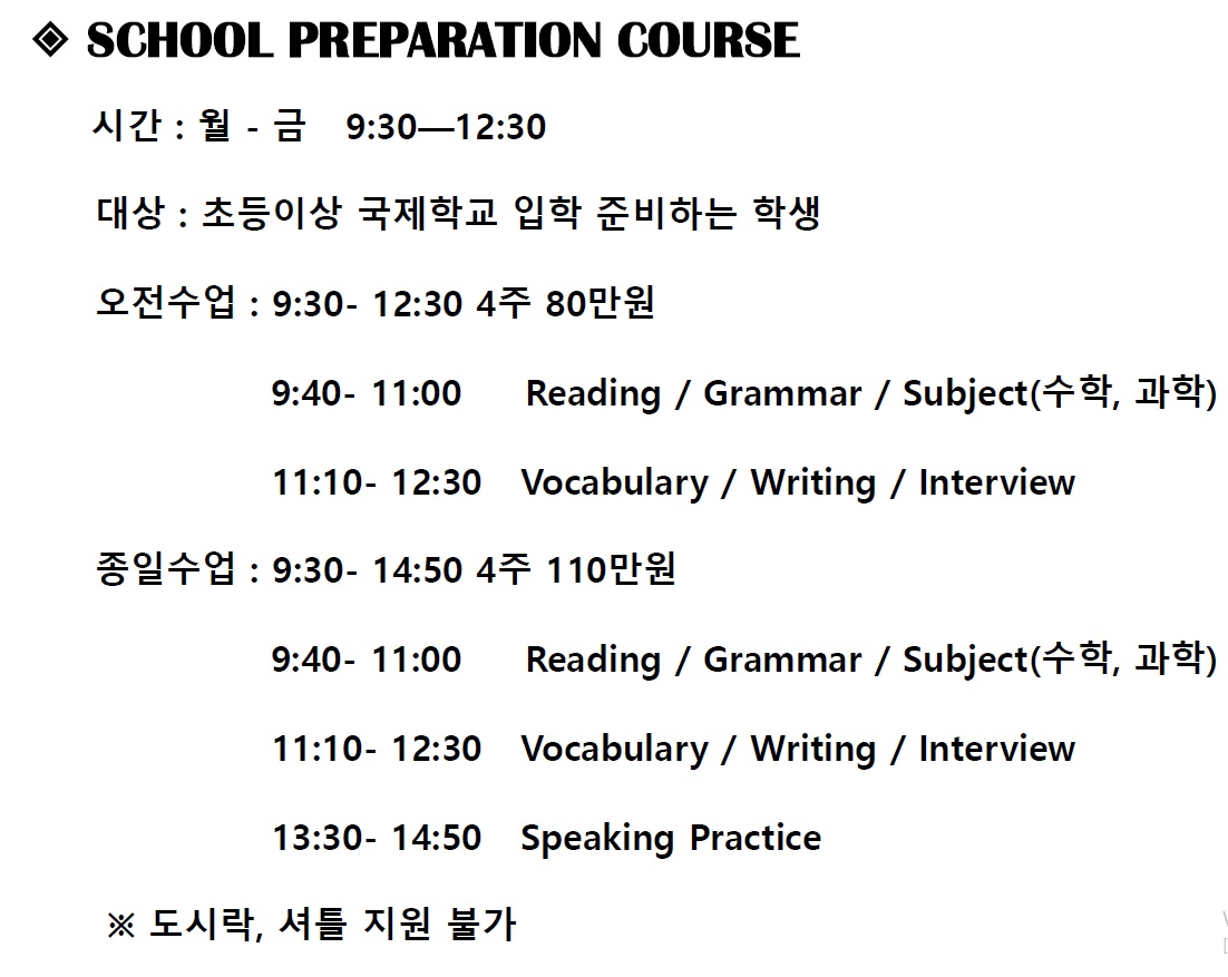대상 - 초등학생 이상 말레이시아 국제학교 입학 준비하는 학생