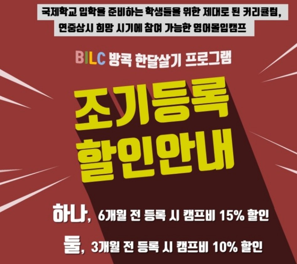2020년 BILC어학원 통학형 영어몰입캠프 조기등록 할인 혜택