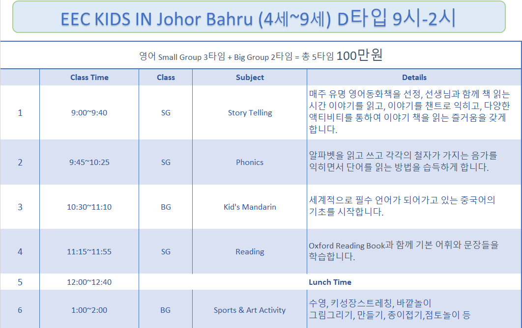 #EEC어학원 #말레이시아가족연수 #조호바루가족연수 #유치원가족연수