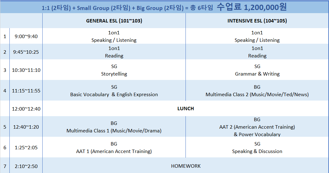 위의 수업을 들어도 수업이 부족하다면 일대일수업을 추가하실 수 있습니다.