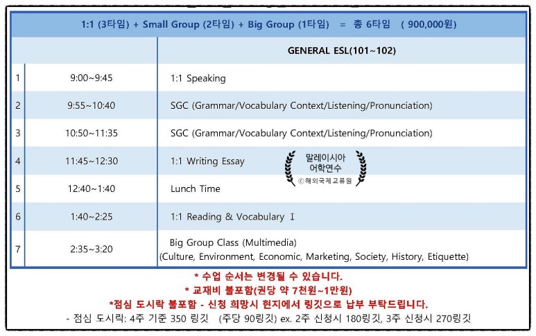 말레이시아 조호바루 EEC어학원 직장인 시니어 성인어학연수