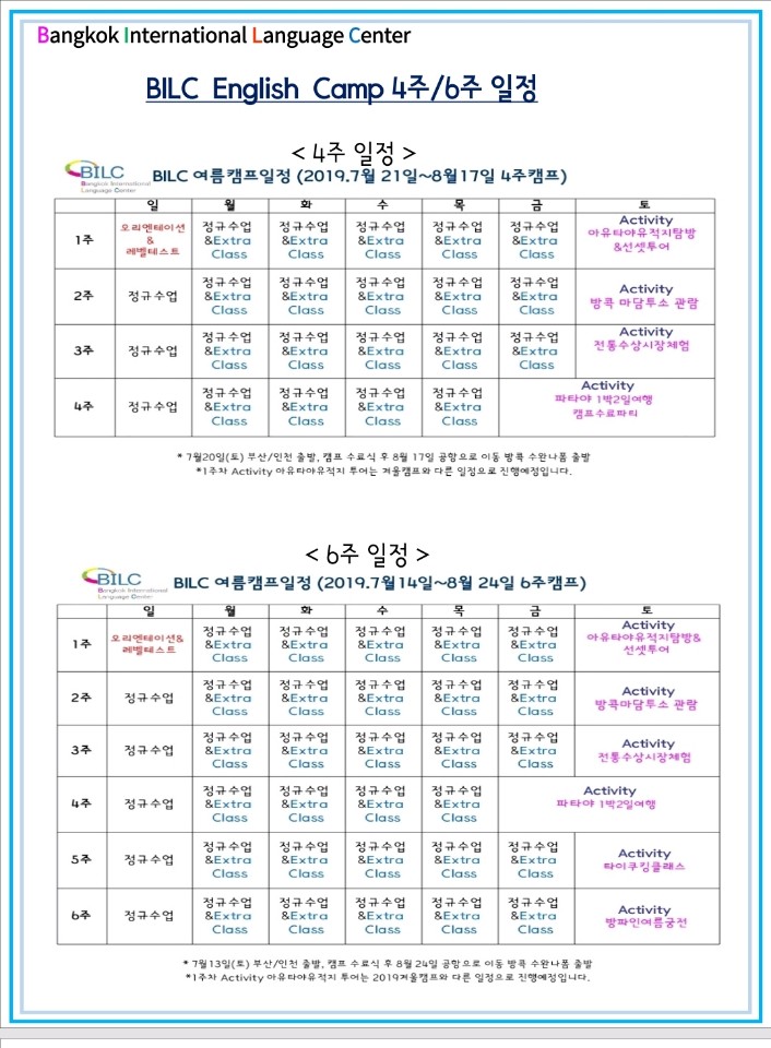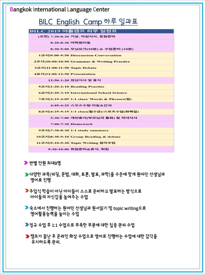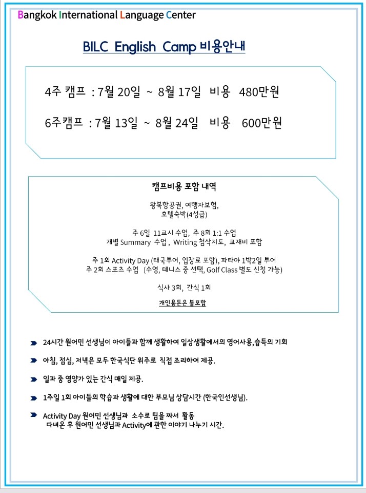 #태국영어캠프 #방콕영어캠프 #4주영어캠프 #6주영어캠프 #BILC어학원
