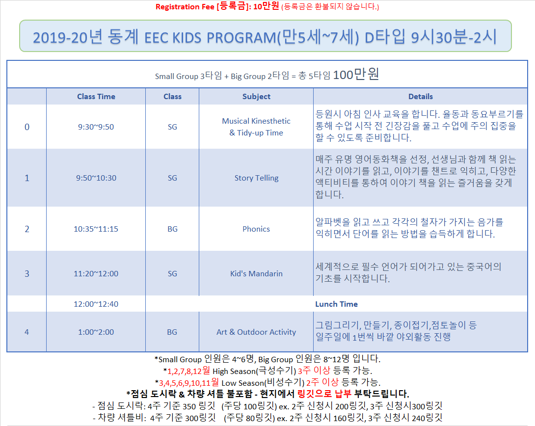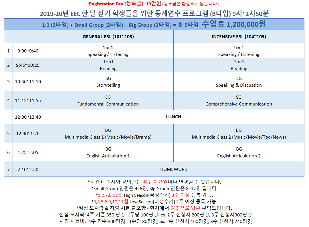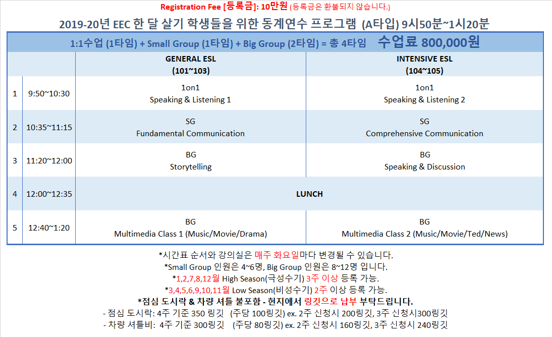 2019년 겨울부터 2020년 1월 2월 말레이시아 조호바루 EEC어학원 가족연수 프로그램 안내