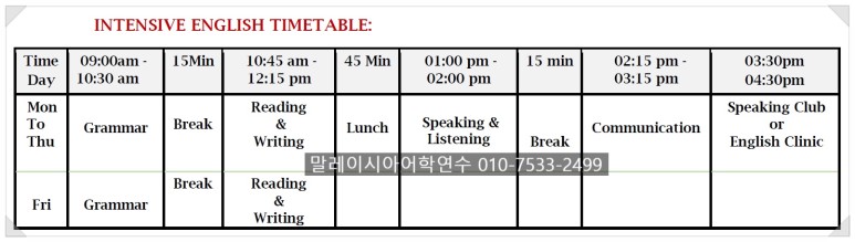 말레이시아 쿠알라룸푸르 ELEC어학원 수업과정