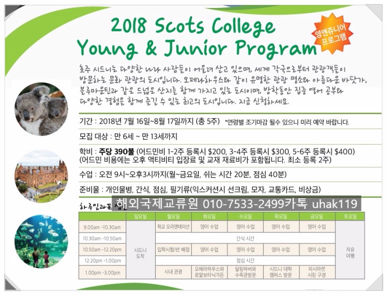 호주 시드니 스캇컬리지 영주니어 영어캠프 가족연수 (엄마동반 가능)