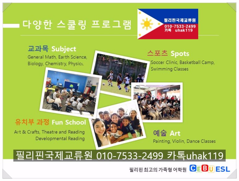 필리핀 세부 조기유학 또는 관리형조기유학과 홈스테이를 생각하신다면 스쿨링 추천합니다.