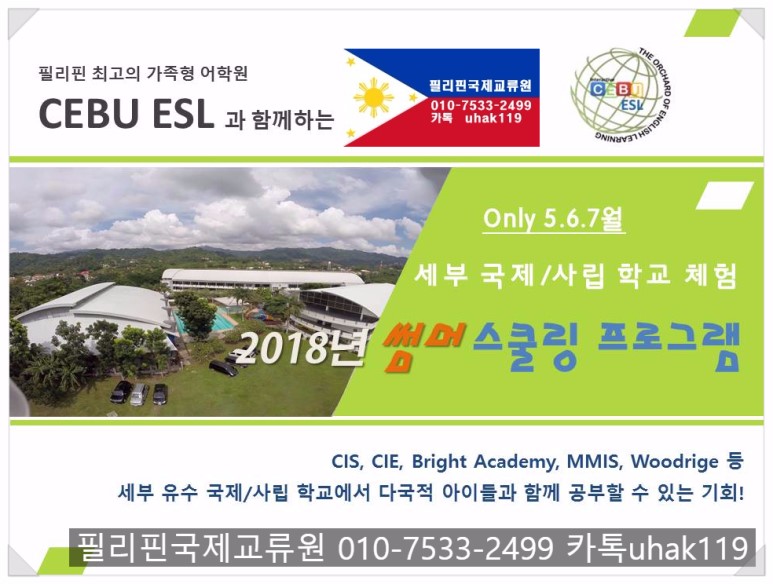 필리핀 세부에서 5월, 6월, 7월에 진행되는 세부국제학교와 명문사립학교 스쿨링 체험 프로그램