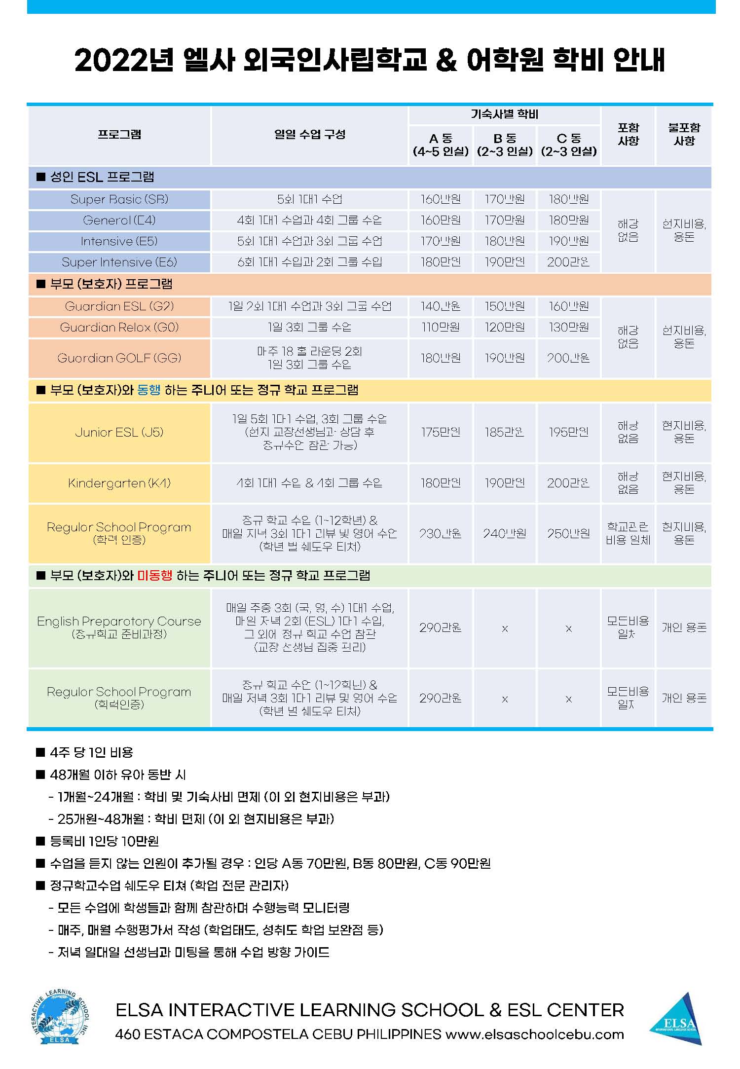 필리핀 세부 엘사학교 부설어학원 체험단 모집 8주 등록 시 4주 추가 무료 연수 혜택