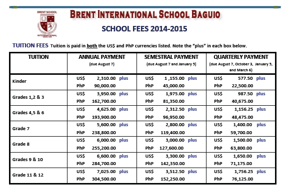 [필리핀조기유학] 필리핀 바기오 브렌트국제학교 학비